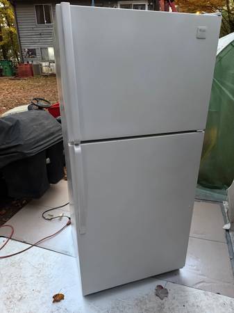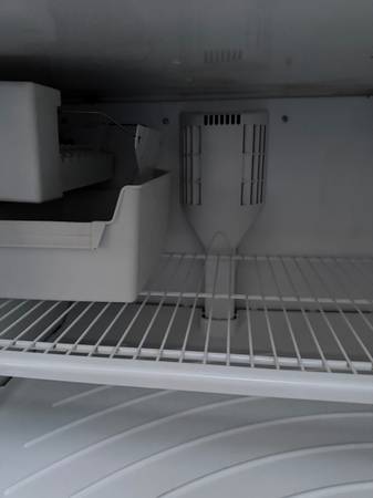 Whirlpool refrigerator, 18.2 cubic feet of total volume, equipped with an Icemagic automatic ice maker, adjustable gallon wide door bins, flip-up utility door shelf, no-frost refrigerator and freezer compartments, the dimensions are 65.5 inches in height, 29.5 inches in width and 31.375 inches deep, in like-new condition, functions very well, Convenient, up-front electronic temperature controls let you choose the ideal temperature for whatever foods you're storing