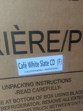 Cafe Counter-Depth 23.2 cu ft 4-Door Smart Compatible French Door Refrigerator w/Ice Maker/ water dispenser. Model #CJE23DP4WW2. Color is white. Located in eastern Rowan County. Cash and local...