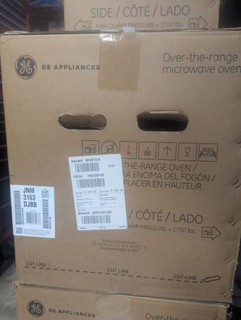 GE 1.6 cu ft Over the Range Microwave (Stainless Steel or Black) New in box! Stainless steel model #JNM3163RJSS, Black model #JNM316DJBB. Cash and local pickup only. Located in eastern Rowan County.