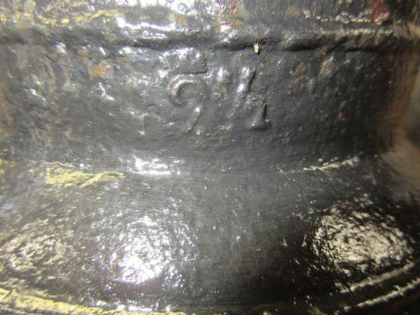 The bottom has three legs and has an embossed JTL with the T in the middle being larger.