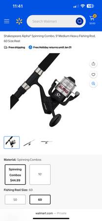 9' Medium Heavy Fishing Rod, 60 Size Reel