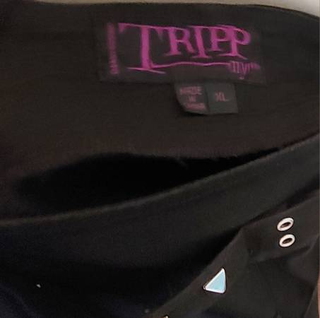 TRIPP Black Pleated Skirt with Silver Studs and Chain Size : XL Length - 13" waist to hem Waist - 18" side seam to side seam $35