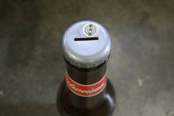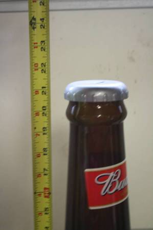 Plastic Budweiser Bottle Bank. It was sold as a collectable and had popcorn in it. 21" high and made of plastic. Phone or Texts are best as I am not good about checking E-mail. Bill @ Seven Zero...