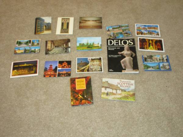 Over 260 postcards from all around the world, also 10 guide books and 3 postcard packs. 10 for $5