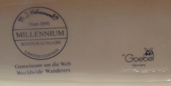 Hummel Millennium 2000 Limited Edition of WORLDWIDE WANDERERS, Number 1024/2000. The figurine is 16” long, 8” high, and 5” wide. There are 6 children, all holding a rope on their trek around the world. The figurine is