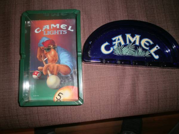 3-Joe camel ashtrays. and 2- cups 1- lighter . cups have small cracks in them. $25 for all