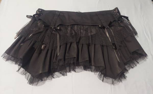 Hell Bunny Black Skirt With Garters and Mesh Ruffle - general for...