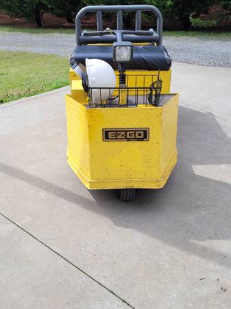 Nice ezgo / cushman 24 volt electric three wheel minute mizer / step saver ev shop industrial warehouse or cruise around town utility golf cart with on board charging system has Four Fairley new Interstate 6 volt deep cycle Batteries Purchased on 11-16-23 this unit Operates perfectly in reverse as i stated above the forward switch as issue Horn,Headlight,& Brakelight all function as they should. Save $ buying used.The hour meter reads 00595.9 at this time but will change as we use the kart.The price is $1200.Email if interested Thanks for viewing.