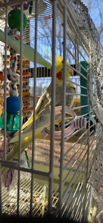 7 yr old male cockatiel. Comes with cage, food and toys. Price negotiable
