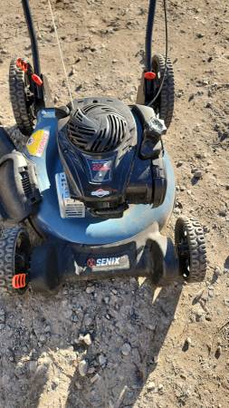I am pleased to offer this Senix Briggs & Stratton 140cc 21" cut push mower. This mower is basically brand new it was only used two times we bought it brand new in the box the owner of the company bought it for his house along with some other ones that we bought to resale. He got a used one off of job that works. So he decided to bring this one back to resell. Again it's only been used two times. During the summer it retelled for $399 now they're on sale for $289 to $299