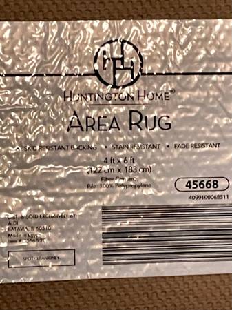This is a 6X4 area rug. It is a light green background with white flower leaf accents. The pic does not do it justice. It is really pretty. Bound on all 4 sides. Slip resistant backing. Fade...