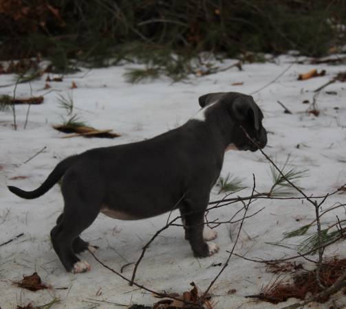 Beautiful 8 week old ABKC Registered American Bully puppies available on 2/10. Vet check complete, dewormed, and first set of shots. Rehoming fee applies. Please email for more information.