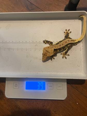 Crested gecko. Lilly white. Male. 39 grams. He’s a beautiful pet or would be able to mate come breeding season. Pick up in Mooresville NC Rehome fee of 250.