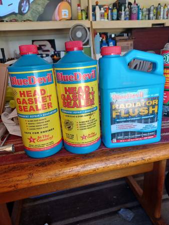 2 Quarts of Blue Devil Head Gasket sealer and a bottle of their Radiator Flush.All the containers are unopened.I selling at less than half price. $50 Call or text Joe,thanks.