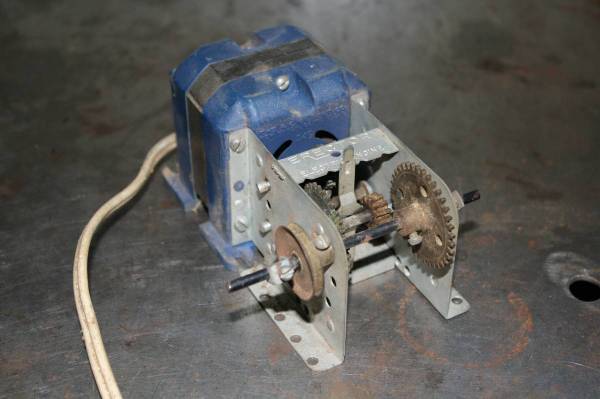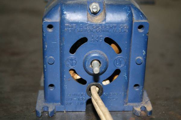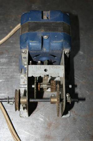 Erector set motor. It was made in America by the AC Gilbert company. Model number A49, 20Watt. The motor and transmission work great. Phone or Texts are best as I am not good about checking E-mail....