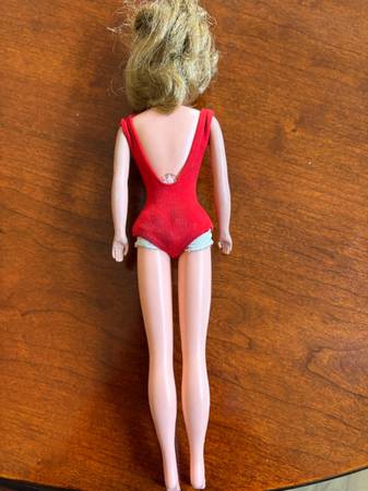 11 inch doll with red bathing suit; she has button to lengthening her hair but I dont know if it works.